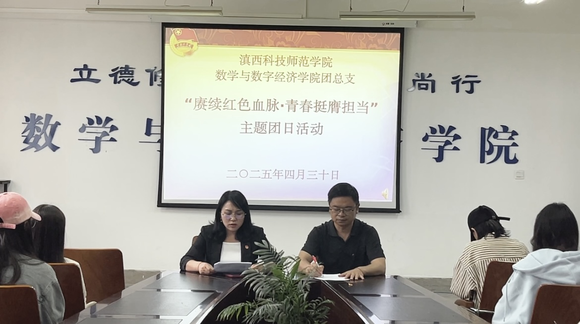 为进一步深入学习贯彻习近平新时代中国特色社会主义思想和党的二十大精神,贯彻落实习近平总书记关于青年工作的重要思想,激发团员青年昂扬的斗志和奋发的意念,弘扬“爱国、进步、民主、科学”的五四精神,赓续红色血脉,勇担时代重任,用青春汗水为中国式现代化挺膺担当。4月30日,数学与数字经济学院团总支开展了“赓续红色血脉·青春挺膺担当”主题团日活动,学院党总支副书记(主持工作)费秀海、团总支书记李子萍、团学干部、班级团支部书记、团员代表参加活动。