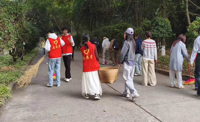 教学楼旁、主干道上,志愿者们化身“环境卫士”,分工协作清理垃圾、擦拭设施、整治死角。他们不仅用双手美化了校园,更积极宣传文明理念,让雷锋精神在劳动中扎根,让文明之花在校园绽放。