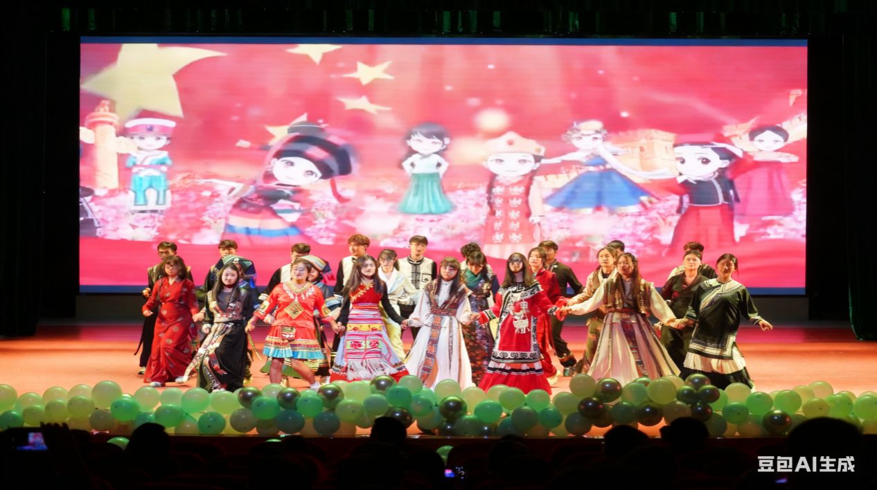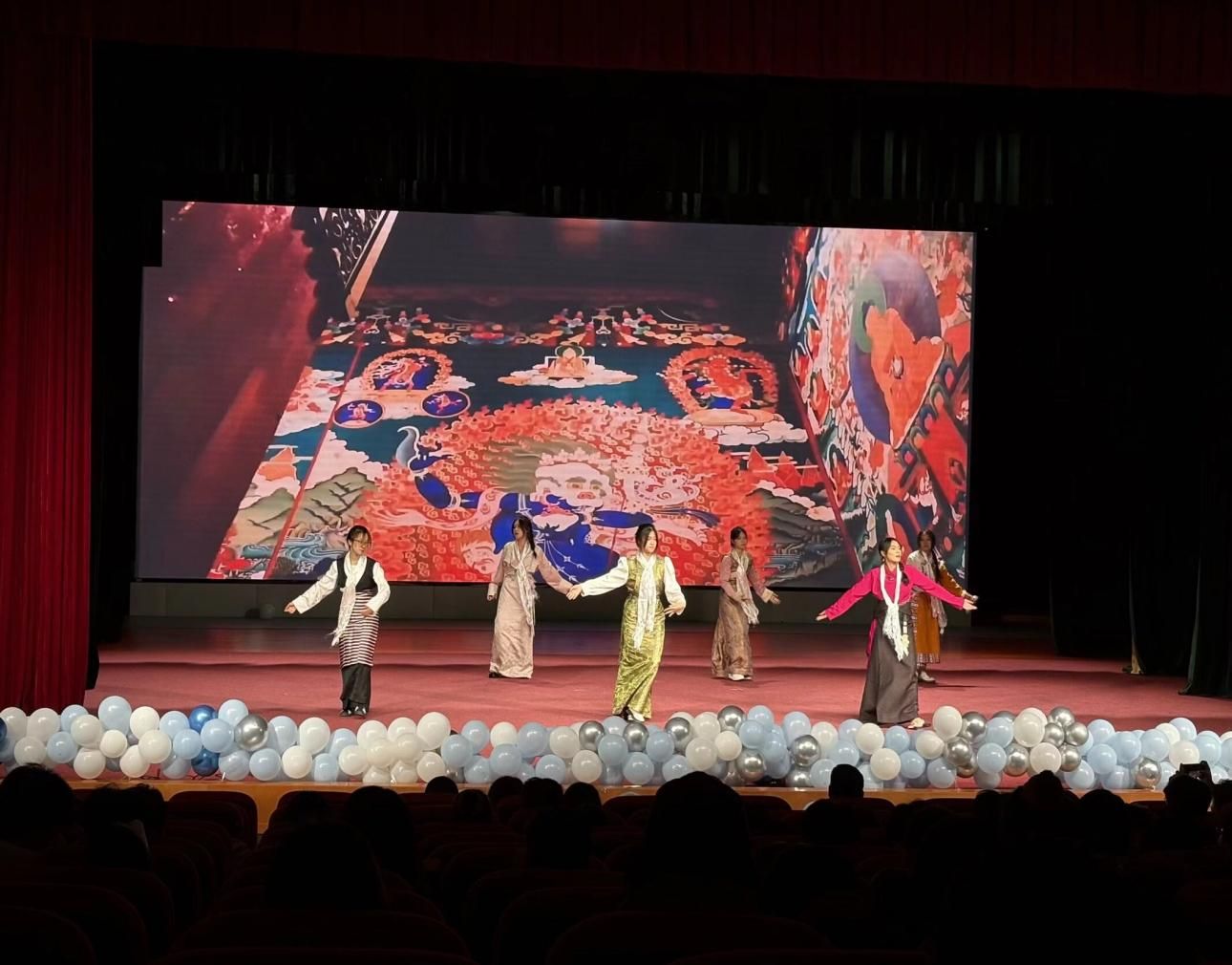小品《海克斯迷踪之扫黑除恶》巧妙融入数字元素,用趣味剧情传递社会正气,而小品《亮剑》则以革命故事为内核,将坚韧精神与学子担当相连,独特构思赢得满堂喝彩;钢琴独奏行云流水,指尖流淌的旋律为晚会注入静谧诗意;傣族舞《小卜少》尽显傣家少女灵动;藏族舞《吉祥迎新》洋溢高原热情。民族风情与青春活力交织,为晚会增添了浓郁的文化色彩。